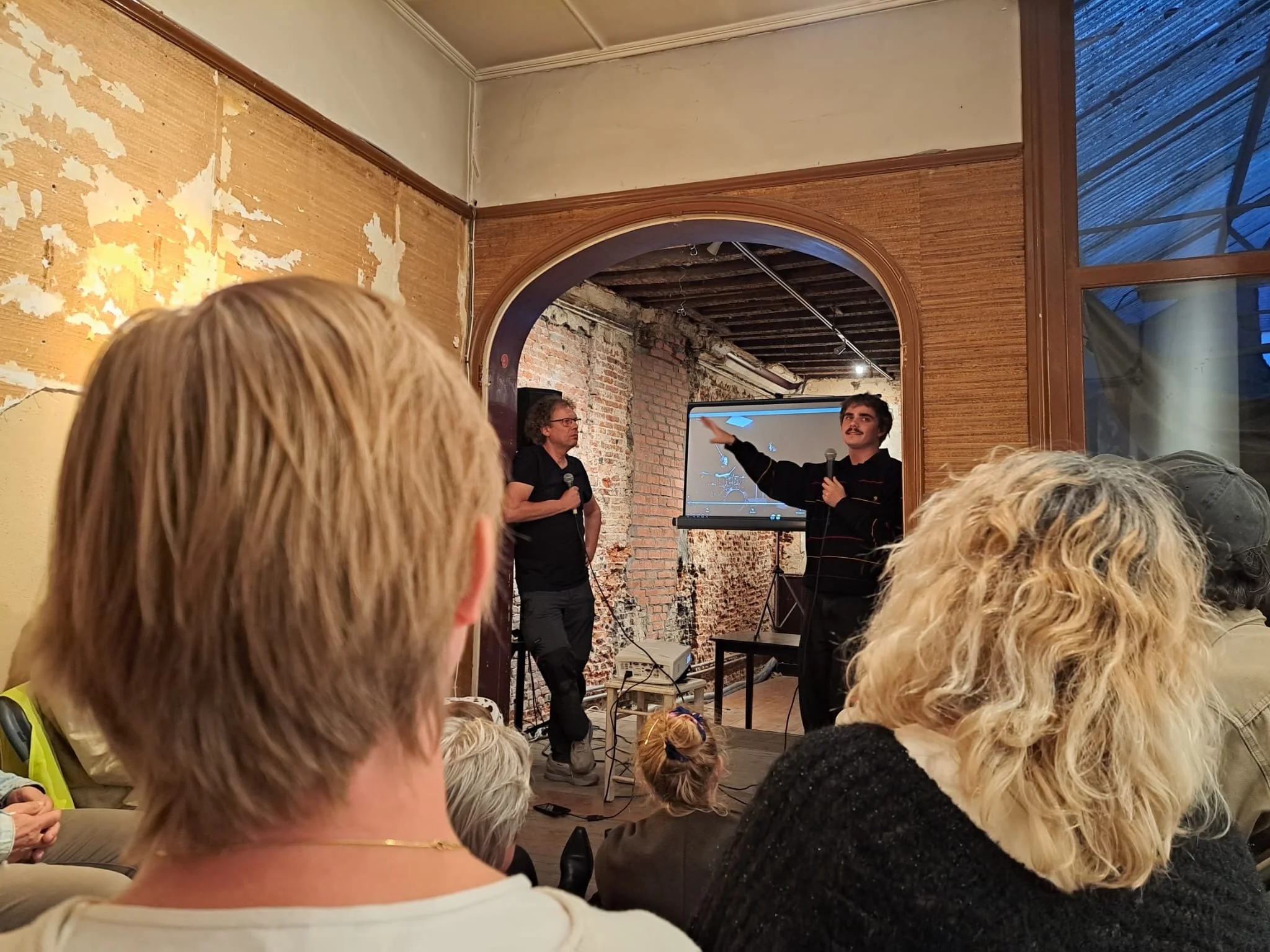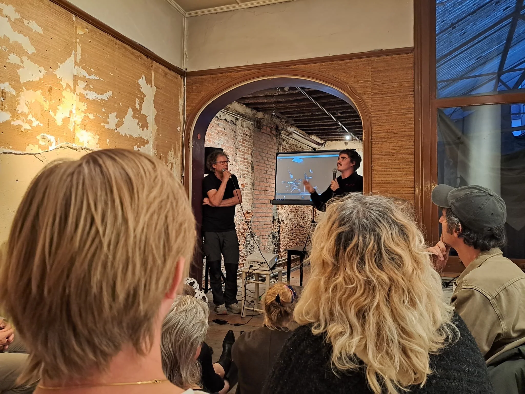 A film about radical honesty: the brilliant Richard and the hilarious Wout step into a space and begin to improvise without a plan. Their movements, music, and rhythm arise in the moment: sometimes clumsy, sometimes by chance, often unknowingly. As they search for words, gestures, and sounds, structures emerge in film and material: repetitions, unexpected patterns, a dance of coincidence and intention. The result is a raw, playful, and honest encounter that doesn’t need to go anywhere, and precisely because of that, can become everything.